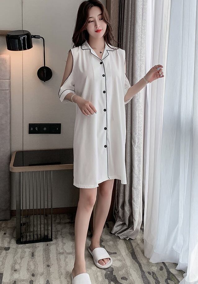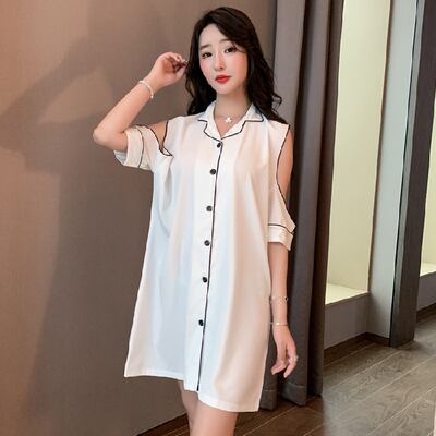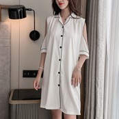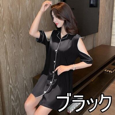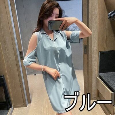 パジャマ ルームウェア ショルダーカット オープンショルダー レディース サテン シャツワンピース デート お泊り 女子会 色っぽ トレンド 韓国 ワンピース 肩出し ロング丈 膝丈 膝上 半袖 春 夏 20代 30代 40代 お洒落 オシャレ セクシー かわいい 大人可愛い 大人女子 エレガント シンプル カジュアル 無地 バイカラー 黄色 イエロー 水色 光沢 つるつる ゆったり 大きいサイズ 大きめ XL 2XL