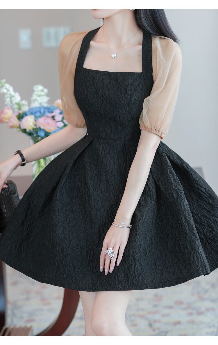 ミニワンピース ワンピース レディース クラシカルワンピース ミニ ドレス パフスリーブ 五分袖 スクエアネック 裾フレア ショート丈 ミニ丈 大きいサイズ 黒 ブラック 大人可愛い きれいめ 上品 レトロ キュート ガーリー エレガント フォーマル 春 夏 秋 冬 二次会 お呼ばれ オフィス ビジネス OL 通勤 学生 通学 デート お出かけ パーティー イベント 女子会 休日 体型カバー 美脚 モテ 謝恩会 結婚式 披露宴 セレモニー トレンド インスタ映え 透け感 M XL