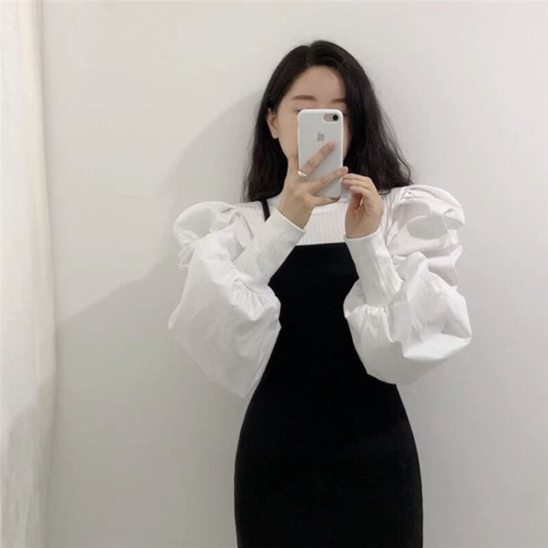 パフスリーブシャツ トップス シャツ 白シャツ 長袖 パフスリーブ ラウンドネック スリム 細身 ストレート 綿 かわいい 大人可愛い きれいめ シンプル 大人 上品 おしゃれ お洒落 大人女子 こなれ感 ラブリー キュート ガーリー 個性的 モード系 主役級 無地 春 秋 10代 20代 レディース 女性用 デート お出かけ 女子会 休日 パーティー イベント ホテル レストラン ファッション コーデ スタイル モテ インスタ映え ワンサイズ 白 ホワイト 黒 ブラック