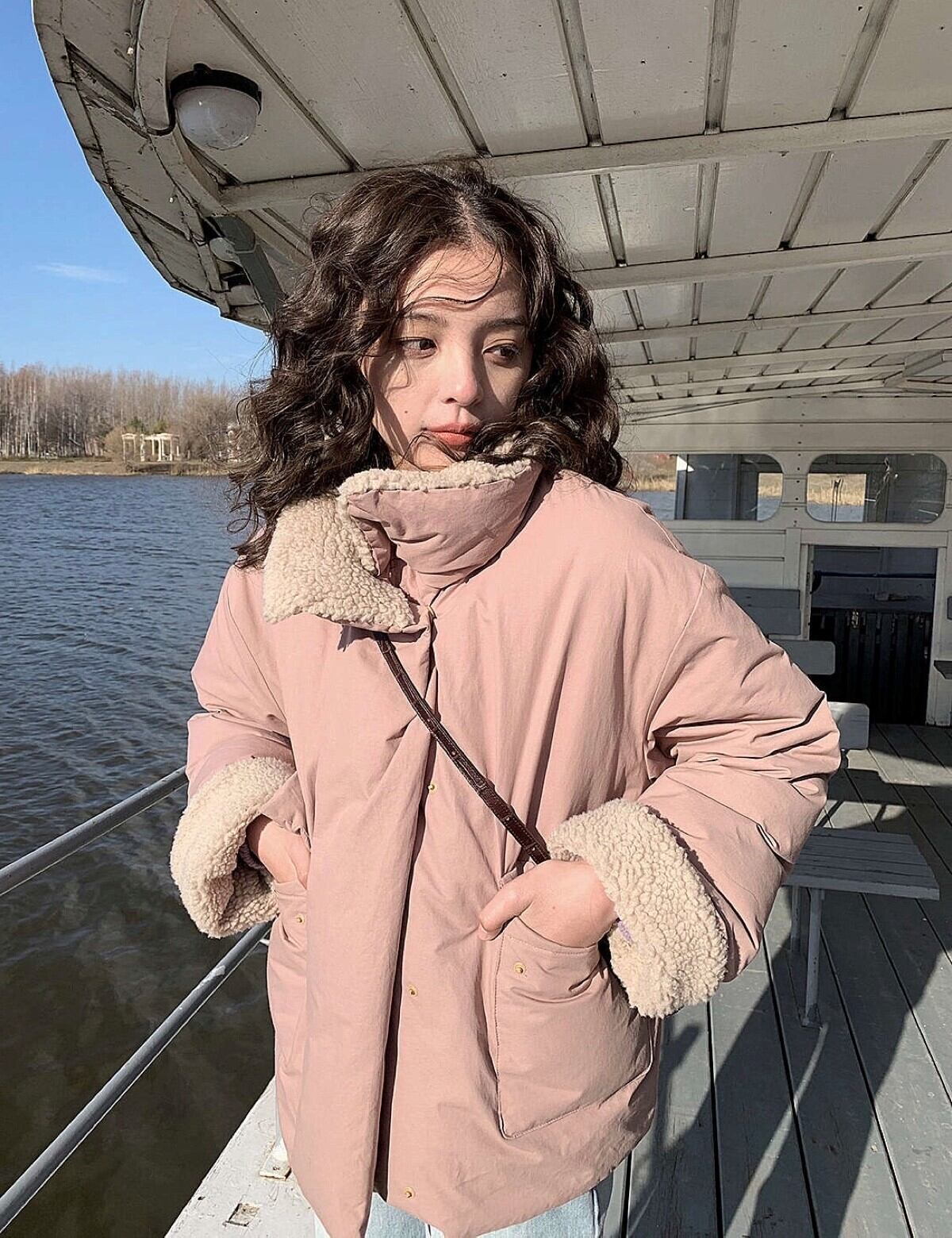ダウンジャケット アウター ジャケット ミディアム丈 長袖 襟付き もこもこ モコモコ ふわふわ ポケット 前開き 綿 厚手 かわいい 大人可愛い きれいめ シンプル カジュアル 上品 おしゃれ お洒落 大人女子 こなれ感 ラフ ラブリー キュート ガーリー 個性的 クール 無地 冬 10代 20代 レディース 学生 デート お出かけ 休日 アウトドア 暖かい 防寒 インスタ映え ワンサイズ ピンク