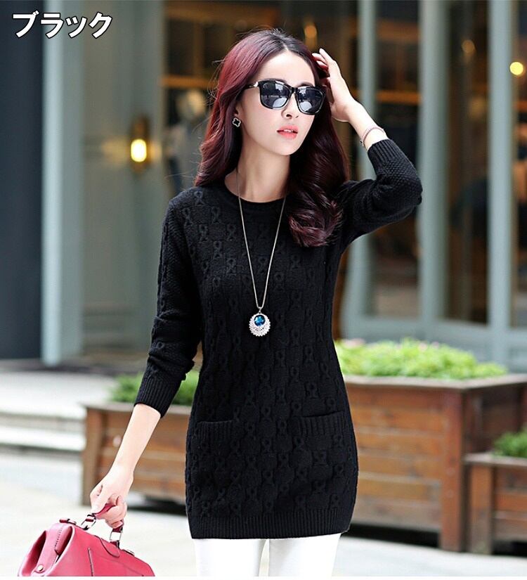 ニット レディース トップス セーター チュニック S M L XL 2XL 3XL 大きいサイズ プラスサイズ グレー 灰色 ブラック 黒 ワインレッド 赤 キャメル グリーン 緑 大人カラー くすみカラー 秋カラー 秋 冬 クルーネック ラウンドネック ポケット 長袖 ミドル丈 ロング丈 スリム 細身 ママ フェミニン ナチュラル カジュアル きれいめ きれカジ 大人 大人可愛い こなれ感 ぬけ感 デート 休日 お出かけ 定番 王道 万能 着回し シンプル モテ こなれ感 ぬけ感 韓国 オルチャン