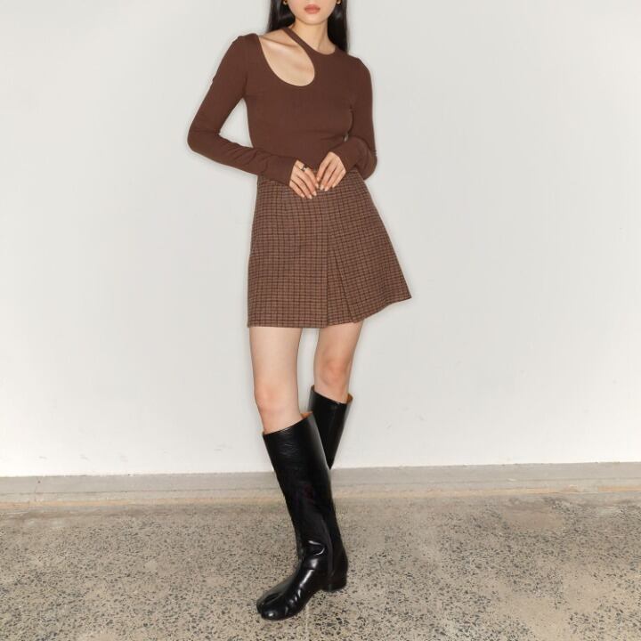 トレンドのショルダーカッティングアシンメトリーニット。