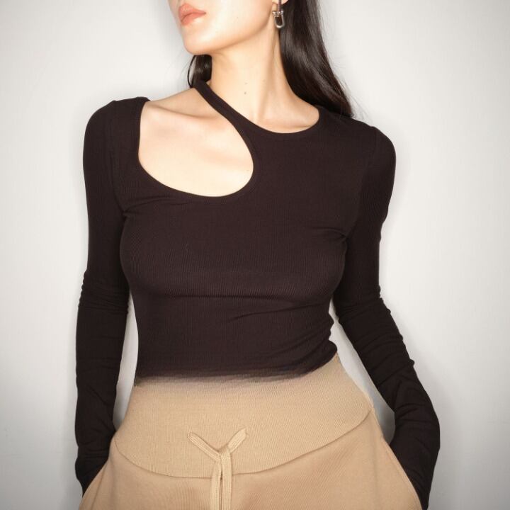 トップス レディース ニットソー セーター プルオーバー ニット リブニット 長袖 カットアウト 無地 トレンド スマート 細身 スタイリッシュ 鎖骨みせ アシンメトリー 体型カバー 着痩せ 薄手 大人可愛い カジュアル セクシー フェミニン きれいめ 韓国 おしゃれ お洒落 お買い物 ママコーデ 春 秋 冬 ロングシーズン お出かけ デート 女子会 学生 普段着 普段使い 着回し イベント 個性的 ホワイト ブラック ブラウン S M L 10代 20代 30代 40代