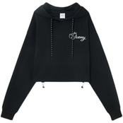 ショート丈ブラックカラーパーカースウェットトレーナー。