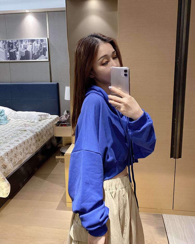 ショート丈 パーカー 前後アシンメトリー レディース トレンド 流行 韓国 今っぽ 長袖 ワイド トレーナー トップス スウェット フード スポーティー ボーイッシュ 個性派 個性的 ランタンスリーブ 萌え袖 美脚 脚長 体型カバー 小顔 かわいい 大人可愛い オシャレ お洒落 20代 30代 へそ出し へそ見え シンプル 無地 カジュアル 春 秋 冬 ラフ ゆったり 大きめ 華奢 大きいサイズ とろみ 抜け感 肌見せ セクシー 青 ブルー