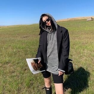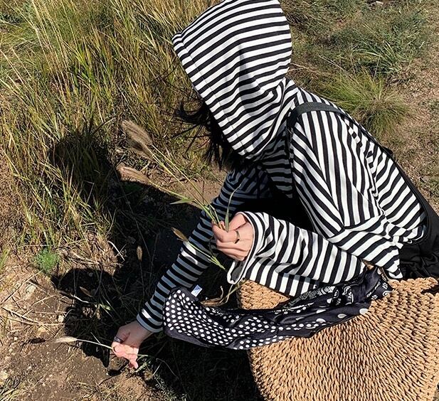 ストライプ カットソー 長袖 フード付き レディース ボーダー 白黒 モノクロ フード 薄手 オールシーズン パーカー トップス 長袖 萌え袖 春 秋 冬 インナー ロング丈 ワイド 大きめ ゆったり 大きいサイズ かっこいい ボーイッシュ XL 2XL 20代 30代 40代 50代 体型カバー 細見え タイト スリム シンプル カジュアル 着回し かわいい 大人可愛い お洒落 オシャレ キュート ガーリー レトロ こなれ感 ラフ 個性的 個性派 クール とろみ