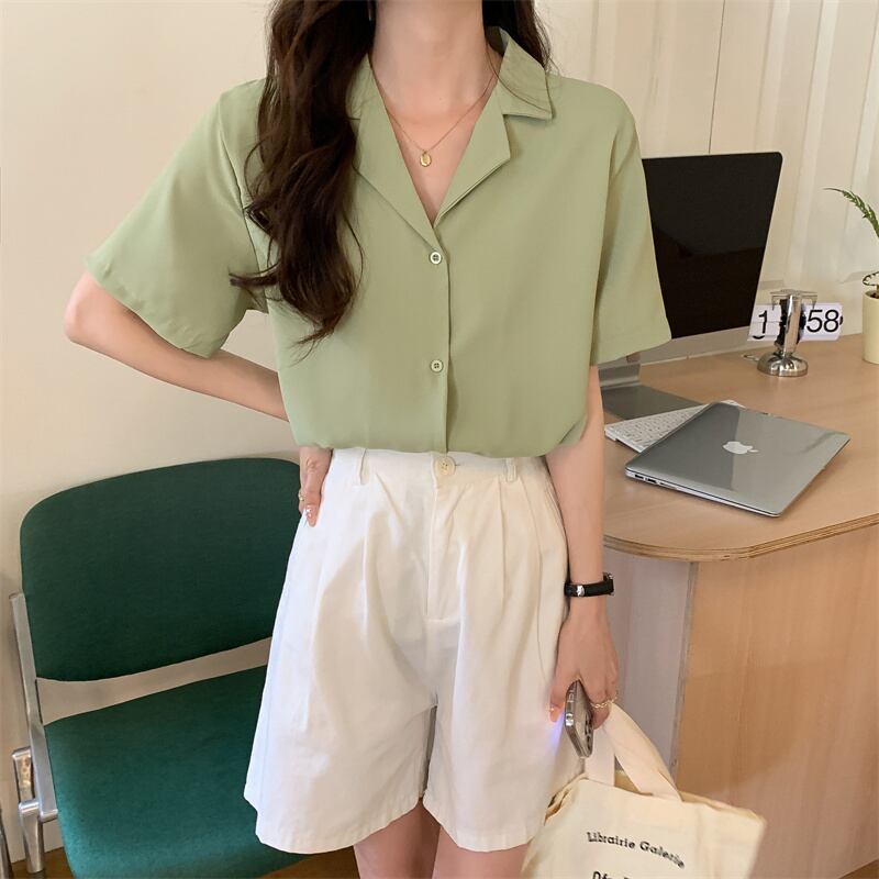 ブラウス 4色 半袖 オープンカラー レディース 大きいサイズ 大きめ 2XL 3XL 4XL XL 春 夏 秋 五分袖 くすみカラー トップス シャツスーツ ピンク 黒 ブラック 緑 グリーン ベージュ ОL 通勤 通学 学生 Vネック 20代 30代 40代 50代 仕事 オフィス シンプル カジュアル きれいめ エレガント 大人可愛い 大人女子 かわいい お洒落 オシャレ ゆったり ビッグサイズ こなれ感 ラフ クール フォーマル 入学式 卒業式 学生 カラーシャツ