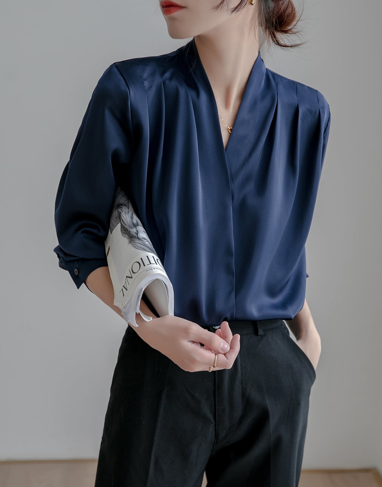 ブラウス 長袖 Vネック レディース サテン 白 ホワイト 紺 ネイビー シフォン サテン セクシー スーツ オールシーズン 春 秋 冬 小顔 ゆったり 大きいサイズ XL 体型カバー オシャレ お洒落 かわいい 大人可愛い きれいめ エレガント 上品 クール かっこいい とろみ 抜け感 こなれ感 ОL オフィス 通勤 入学式 卒業式 パーティー 20代 30代 40代 50代 トップス シャツ Iライン ストレート シンプル 無地 光沢