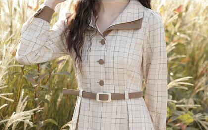 レトロ風 ワンピース ミモレ丈 袖あり 長袖 Vネック 襟付き セミフレア Aライン ベルト ハイウエスト 大人可愛い きれいめ カジュアル 上品 レトロ 大人女子 ガーリー エレガント チェック柄 格子柄 春 秋 入学式 入園式 10代 20代 30代 40代 レディース 女性用 ママ 女の子 オフィス OL 学生 お出かけ お泊まり 休日 旅行 オフィスカジュアル 普段使い ファッション 体系カバー 脚長 サイズ S M L XL ベージュ