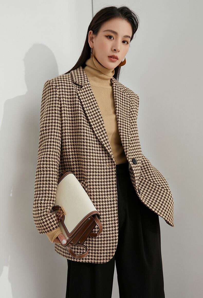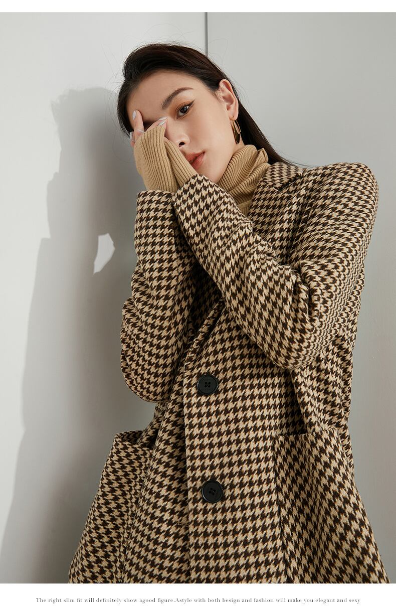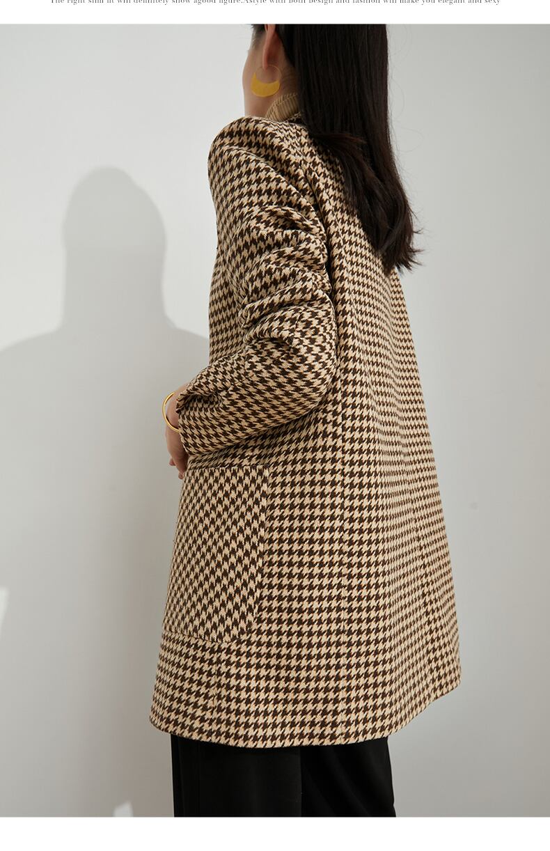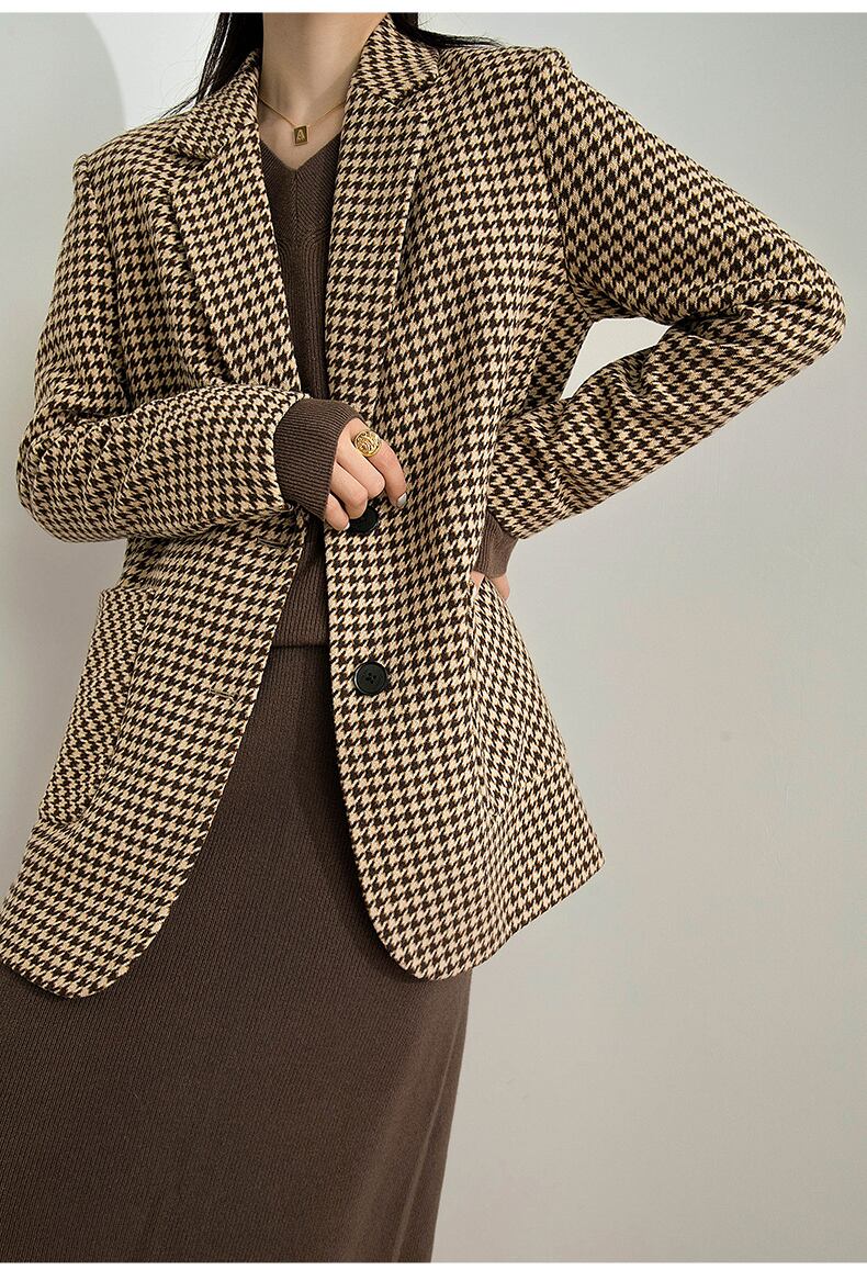 トップス ジャケット 長袖 大人可愛い きれいめ シンプル カジュアル 上品 おしゃれ 大人女子 こなれ感 モダン 主役級 千鳥格子 秋 冬 10代 20代 30代 40代 レディース 女性用 OL 通勤 デート お出かけ 女子会 休日 パーティー ホテル レストラン 着回し 普段使い ファッション コーデ スタイル サイズ S M L XL ブラウン
