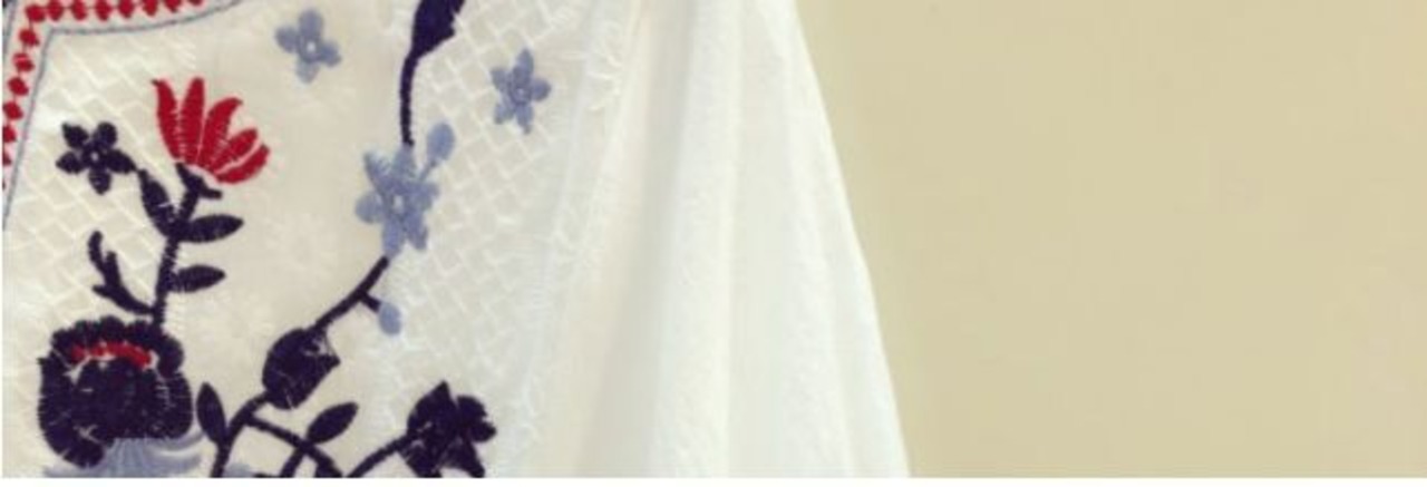 ホワイトブラウスに花柄の刺繍がかわいい◎