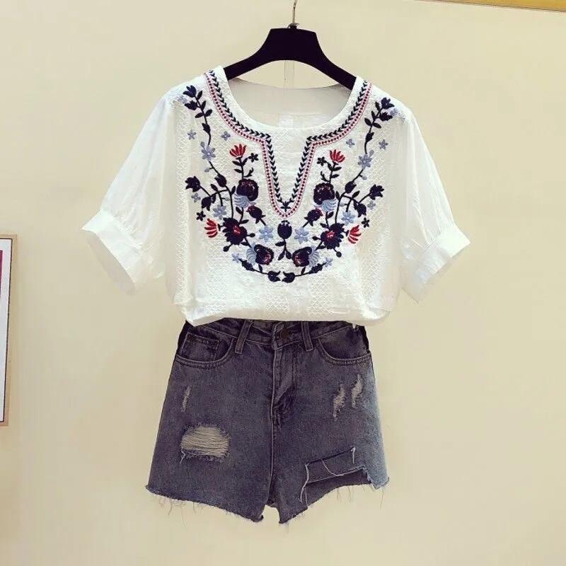 トップス レディース ブラウス 白トップス カットソー プルオーバー 袖あり 半袖 Vネック ラウンドネック 刺繍 綿 かわいい 大人可愛い おしゃれ お洒落 アジアン エスニック エキゾチック レトロ こなれ感 個性的 キュート 存在感 抜け感 S M L XL 2XL 大きいサイズ 白 赤 青 ホワイト レッド ブルー 花柄 夏 10代 20代 30代 40代 50代 60代 ママ 学生 通学 お出かけ 女子会 休日 ストドア イベント リゾート 旅行 海 プール 普段使い お揃い 双子 韓国 楽ちん