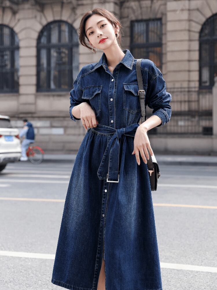 秋 デニム ドレス ワンピース Aラインドレス 膝下 ミディアム丈 袖あり 長袖 Vネック 襟付き Aライン スレンダーライン 細身 ベルト ハイウエスト シングルブレスト デニム かわいい 大人可愛い カジュアル おしゃれ レトロ 大人女子 こなれ感 モダン レトロ 無地 10代 20代 レディース 女性用 ママ 女の子 オフィス ビジネス OL 通勤 学生 通学 デート 女子会 アウトドア パーティー イベント レストラン ファッション インスタ映え 秋 S M L XL 2XL 3XL ブルー