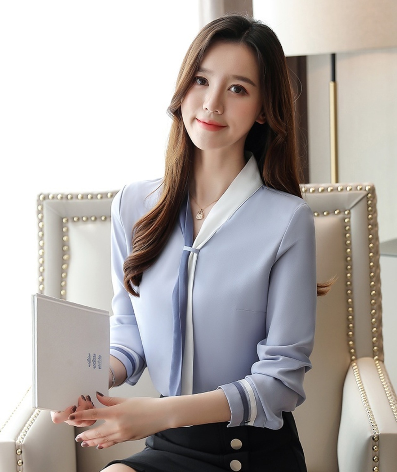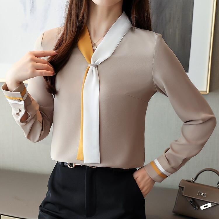 ブラウス タイ付 3色 長袖 レディース 上品 きれいめ お洒落 オシャレ くすみカラー スカーフ 白 ホワイト ベージュ オレンジ 水色 ブルー 青 個性的 個性派 清楚 リボン タイ ハーフ 春 秋 冬 エレガント 高級感 カフェ 20代 30代 40代 かわいい 大人可愛い 大人女子 Iライン ストレート 大きめ 大きいサイズ XL 2XL シフォン トップス シャツ カットソー ОL 通勤 オフィス 仕事 ライン スタンドカラー Vネック 主役 存在感 こなれ感