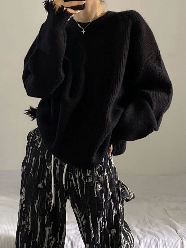 ゆったりダボっとしたセーターで色んなボトムスと合わせられ、おしゃれが楽しめます◎