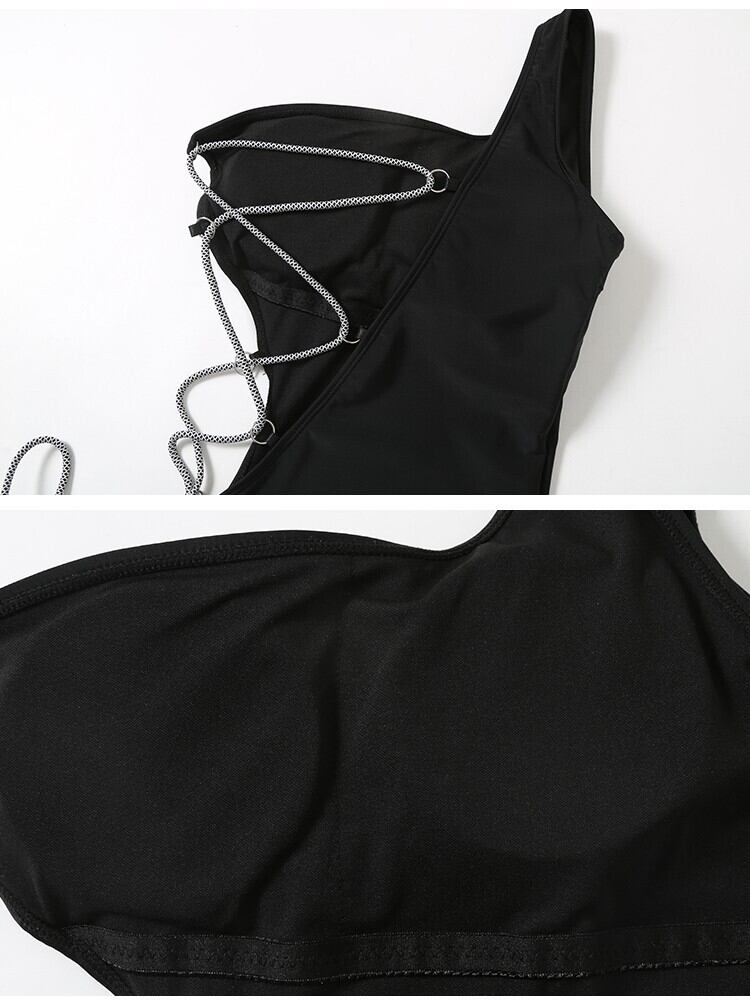 水着 スイムウェア モノキニ ワンピース水着 ワンピース ワンショルダー パッド付き 紐 レースアップ 大人可愛い セクシー sexy おしゃれ 主役級 存在感 個性的 無地 レディース 脚長 スタイルアップ 韓国 インスタ映え S M L XL 黒 ブラック