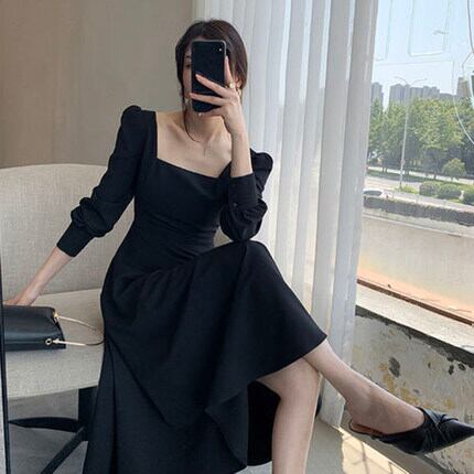 ロングドレス トップス スカート ワンピース ドレス プルオーバー ワンピドレス ロング ロング丈 ミドル丈 長袖 スクエアネック タイト 細身 ポリエステル スパンデックス 大人可愛い きれいめ シンプル カジュアル 大人 上品 おしゃれ お洒落 レトロ キュート ガーリー ルーズ 個性的 エレガント モダン 無地 春 秋 20代 30代 レディース デート 女子会 パーティー イベント リゾート ホテル ガーデン レストラン 普段使い ファッション コーデ スタイル S M L XL 黒 ブラック