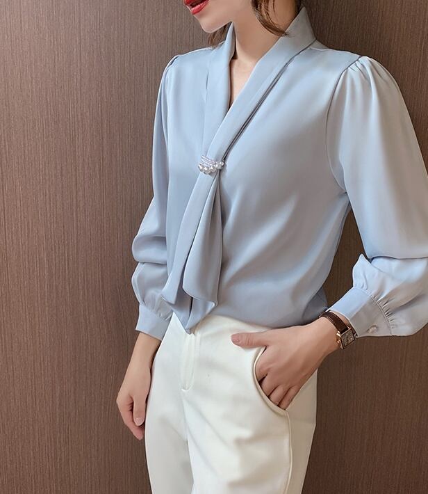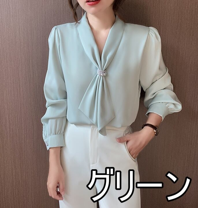 シフォンブラウス 長袖 リボン パール レディース トップス シャツ ブラウス シフォン タイ付 薄手 体型カバー 細見え 春 秋 冬 Vネック パステルカラー ゆったり 大きいサイズ 大きめ XL オシャレ お洒落 かわいい 大人可愛い 大人女子 ガーリー キュート ОL オフィス 通勤 仕事 フォーマル 入学式 卒業式 きれいめ 上品 エレガント 高級感 20代 30代 40代 50代 緑 グリーン ブルー 青 白 ホワイト とろみ 抜け感 こなれ感 トレンド 韓国 流行