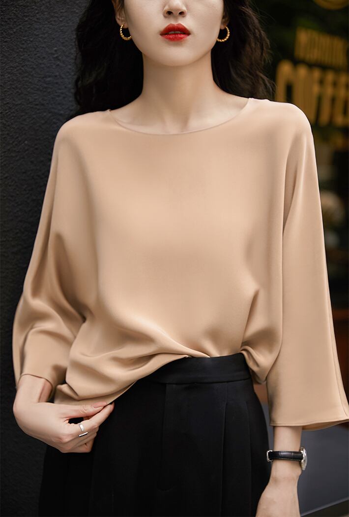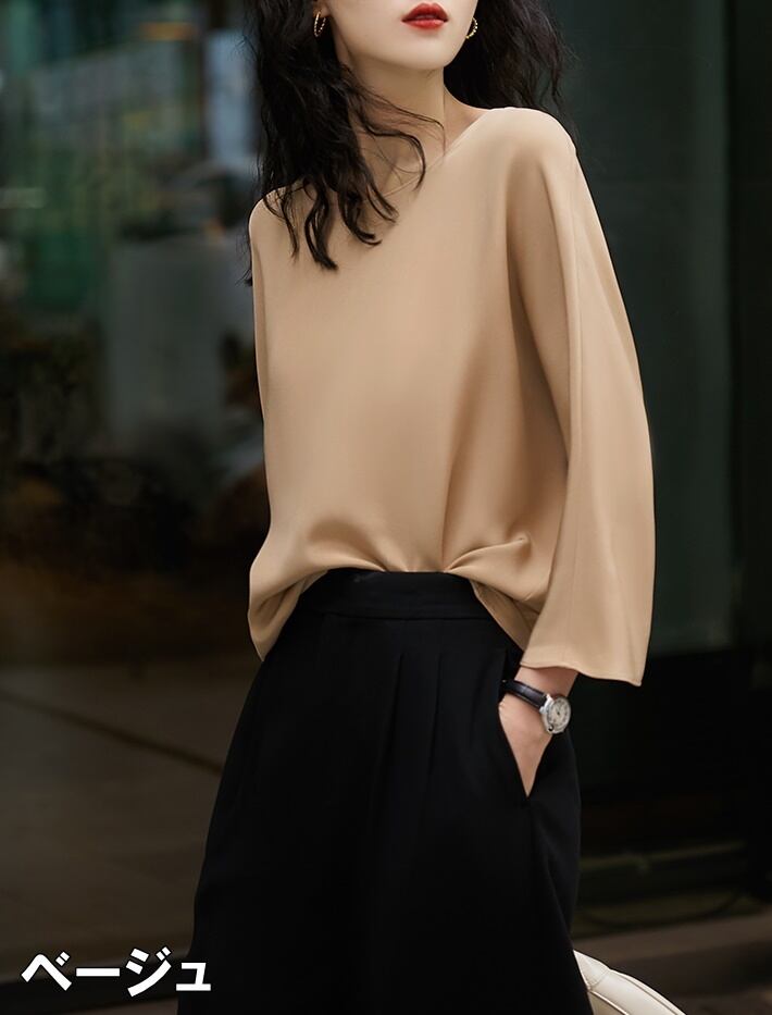 ブラウス レディース トップス シャツ S M L XL グレーグリーン ベージュグレー ベージュ 無地 サテン 光沢感 落ち感 春 秋 ラウンドネック 長袖 ショート丈 ミドル丈 体型カバー ママ マタニティ フェミニン ナチュラル カジュアル きれいめ きれカジ 大人 大人可愛い こなれ感 ぬけ感 存在感 主役級 休日 お出かけ デート 華やか ガーリー モテ キュート シンプル デイリー 定番 万能 着回し 学生 通学 韓国 オルチャン 通勤 オフィス OL 上品 エレガント 入園式 卒園式 入学式