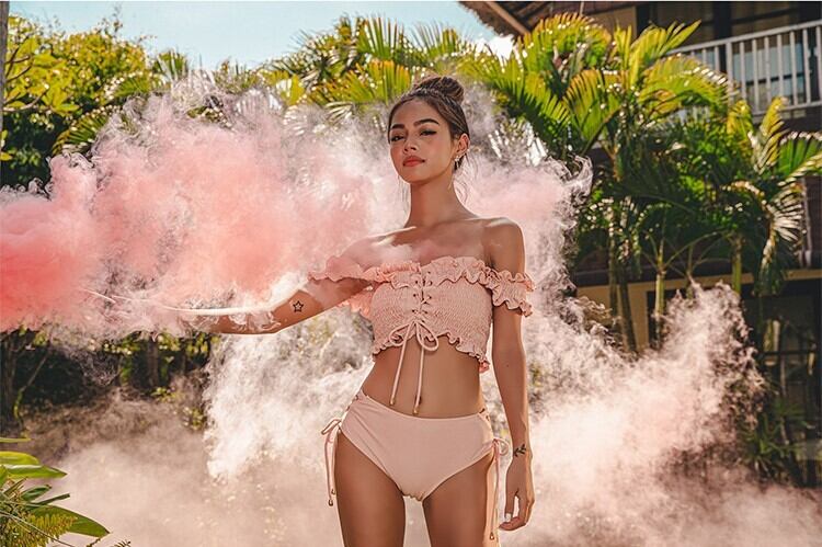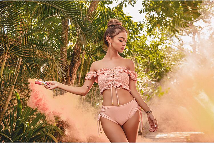 レースアップデザインがセクシーなビキニ。