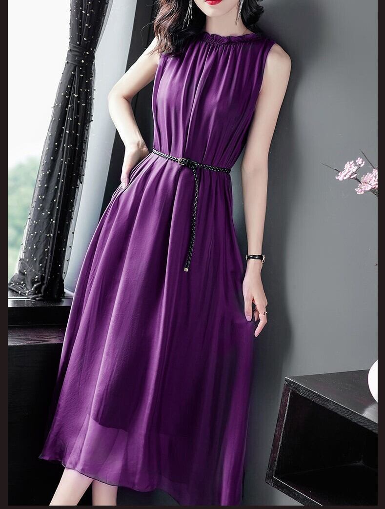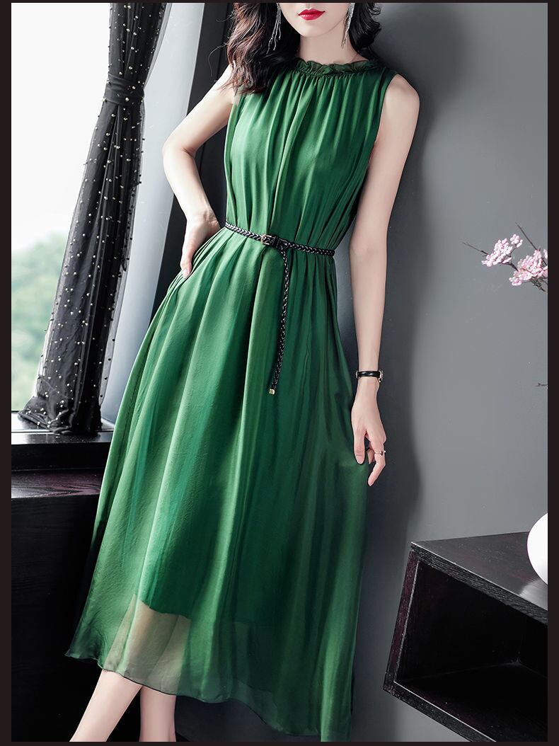 ワンピース ワンピドレス ロング ロング丈 マキシ マキシ丈 袖なし ノースリーブ Uネック ラウンドネック 襟なし スリム 細身 ストレート ベルト ウエストマーク 透け感 きれいめ 大人 上品 おしゃれ エキゾチック 大人女子 個性的 クール モード系 セクシー エレガント モダン とろみ感 無地 レディース パーティー イベント リゾート モテ 体系カバー 美脚 M L XL 2XL 3XL 緑 グリーン 紫 パープル 大人カラー