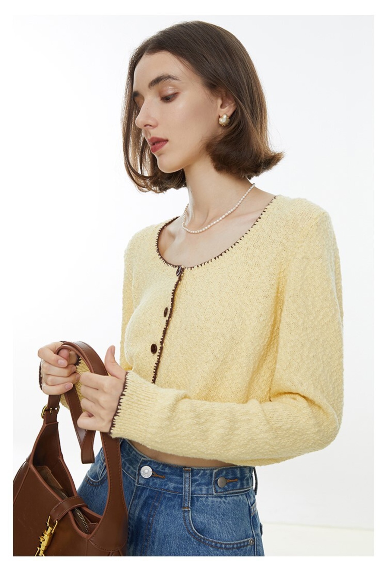 トップス セーター カーディガン ショート丈 長袖 Uネック スリム 細身 ストレート 前開き 綿 かわいい 大人可愛い シンプル カジュアル 大人 上品 おしゃれ お洒落 レトロ 大人女子 こなれ感 ラブリー キュート ガーリー ルーズ 個性的 クール モード系 エレガント 存在感 無地 秋 冬 10代 20代 30代 レディース デート お出かけ 女子会 休日 パーティー イベント リゾート ホテル ガーデン レストラン 着回し 普段使い ファッション コーデ スタイル S M L 黄色 イエロー