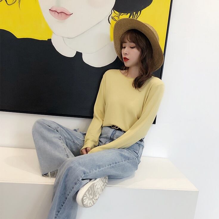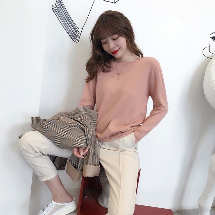 トップス カットソー 9色 長袖 レディース ラウンドネック 無地 シンプル ニット ニットソー 春 秋 冬 シャツ タイト スリム 細身 ゆったり 20代 30代 40代 50代 黒 ブラック 白 ホワイト ベージュ ブラウン 茶色 オレンジ 黄色 イエロー グリーン 緑 青 ブルー ピンク くすみカラー セーター きれいめ 上品 カジュアル かわいい 大人可愛い ОL デート 女子会 着回し 大きいサイズ XL 2XL お洒落 オシャレ クール ラフ こなれ感 ルーズ 抜け感