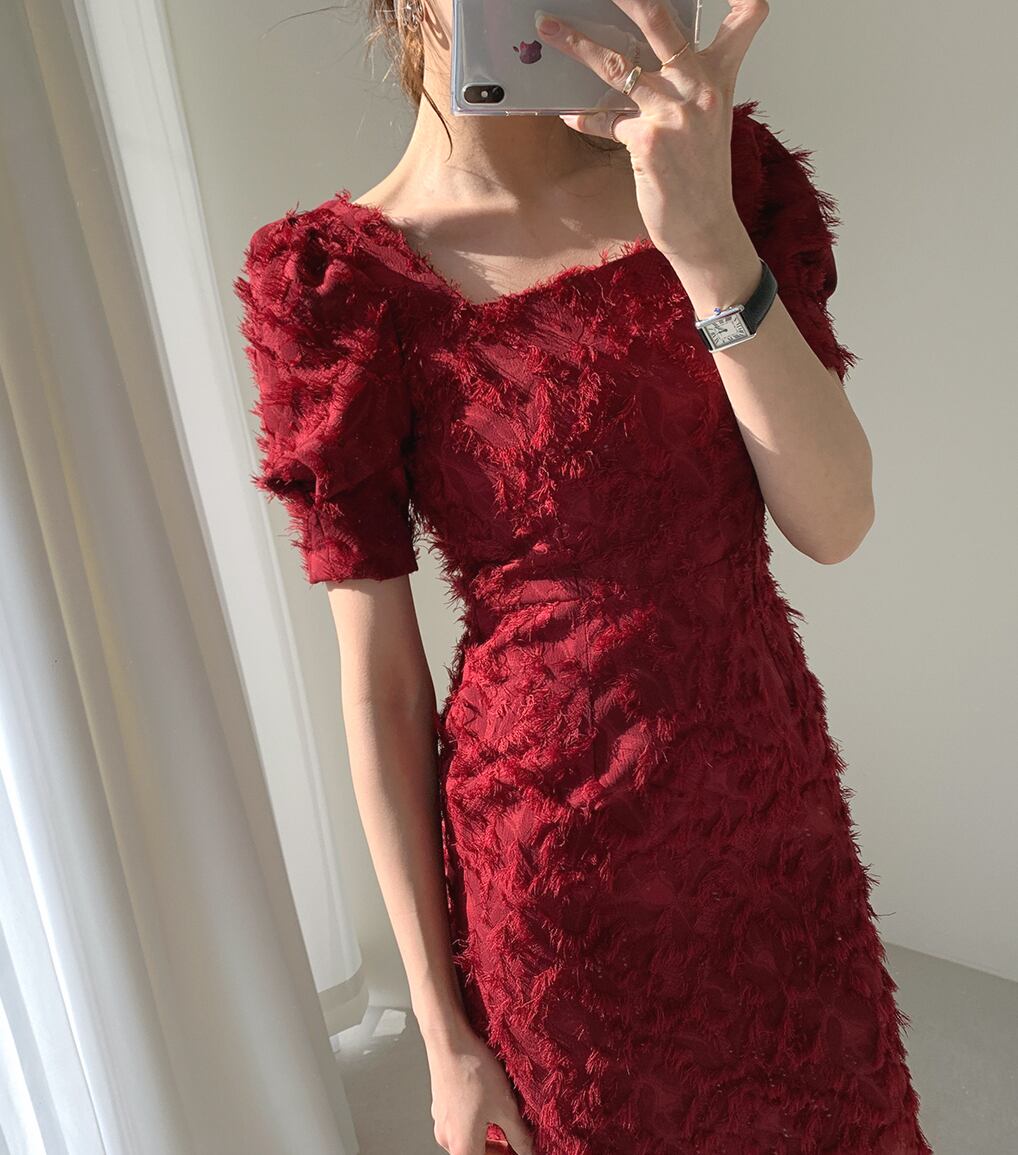 春秋 スリム エレガント ドレス ワンピース パーティードレス ロングドレス ステージドレス ワンピースドレス ナイトドレス ミディアム丈 袖あり 半袖 スクエアネック 襟なし スレンダー スリム ファスナー プルオーバー 異素材MIX 大人可愛い お洒落 大人女子 ルーズ エレガント ナチュラル 華やか 上品 無地 10代 20代 レディース 女性用 ママ 女の子 OL 学生 デート 女子会 休日 イベント レストラン ファッション インスタ映え 春 秋 S M ブラック レッド アプリコット