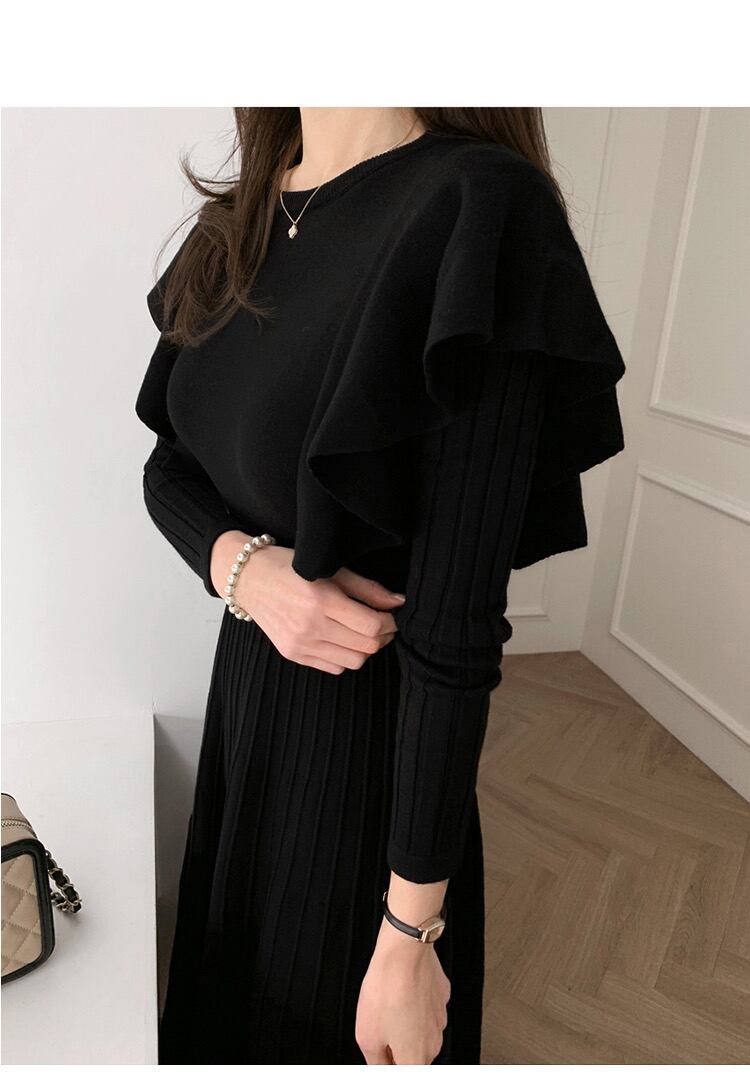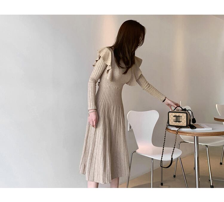 ワンピース ドレス 膝下 ミモレ ミモレ丈 ロング ロング丈 長袖 ラウンドネック フレア レース リボン ウエストリボン ニット かわいい 大人可愛い きれいめ シンプル カジュアル 大人 おしゃれ お洒落 アジアン ラブリー キュート ガーリー ルーズ 個性的 クール セクシー 無地 春 秋 冬 20代 30代 レディース デート お出かけ 女子会 休日 パーティー イベント リゾート 旅行 ホテル ガーデン レストラン 普段使い 韓国 ファッション コーデ スタイル ワンサイズ ブラック カーキ