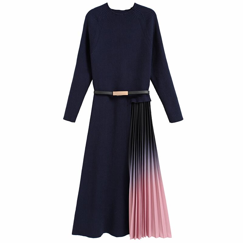 ニットドレス ワンピース ドレス プルオーバー プリーツスカート ミモレ ミモレ丈 ロング ロング丈 長袖 Vネック ラウンドネック スリム 細身 ベルト ハイウエスト ニット 秋 冬 誕生日 お呼ばれ 20代 30代 40代 レディース デート お出かけ 女子会 休日 パーティー イベント リゾート 旅行 ホテル ガーデン レストラン 普段使い ファッション コーデ スタイル 脚長 インスタ映え S M L XL 黒 ブラック 青 ブルー