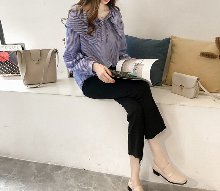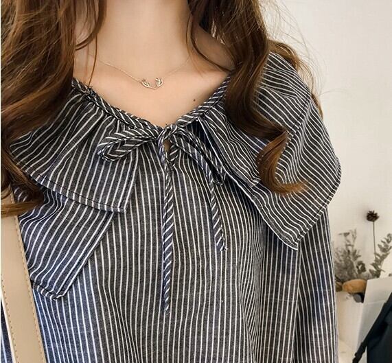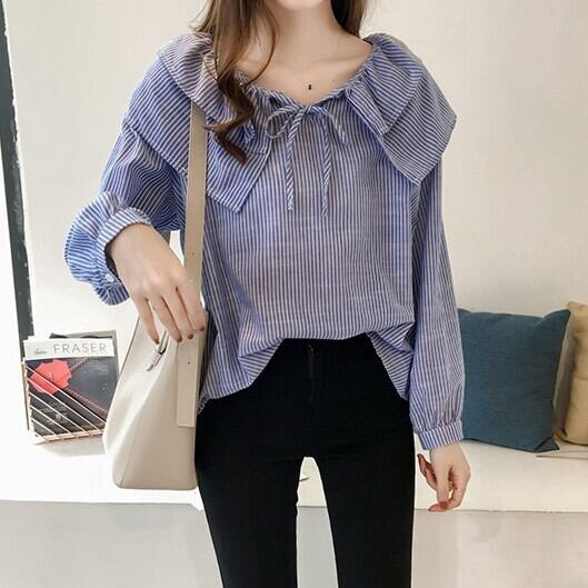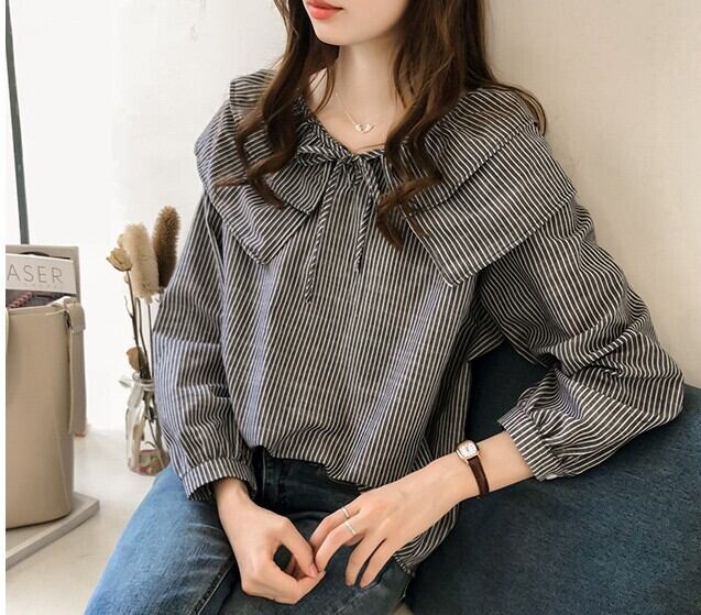シャツ レディース トップス ブラウス M L XL 2XL 3XL 4XL 大きいサイズ プラスサイズ ブルー 青 ブラック 黒 ストライプ 柄 春 秋 長袖 ビッグカラー セーラーカラー ショート丈 ミドル丈 ストレート ルーズ ゆったり ゆる ママ マタニティ 体型カバー フェミニン ナチュラル カジュアル きれいめ きれカジ 大人 大人可愛い こなれ感 ぬけ感 存在感 主役級 休日 お出かけ デート お呼ばれ ガーリー キュート モテ さわやか 定番 万能 着回し 通学 学生 韓国 オルチャン
