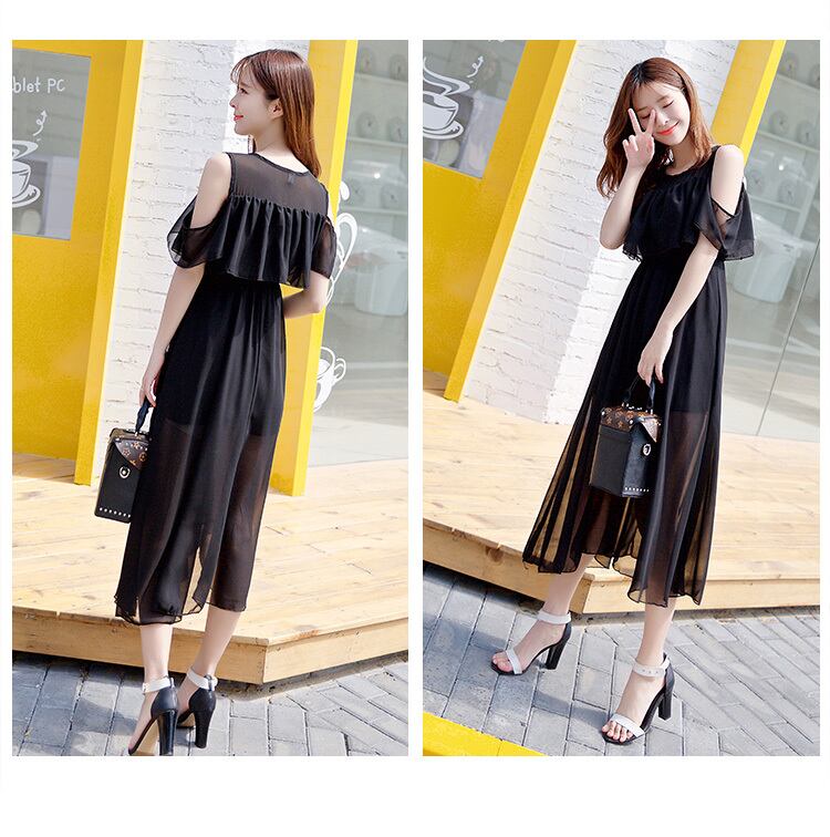 夏 サスペンダー スリム ワンピース プルオーバー 上着 ワンピドレス ロング丈 袖あり 蓮の葉スリーブ ラウンドネック 襟なし Aライン タイプA 異素材MIX 大人可愛い シンプル ラブリー 花柄 夏 10代 20代 女性用 OL 学生 お出かけ お泊まり イベント リゾート レストラン スタイル モテ インスタ映え S M L XL 2XL ホワイト ブルー ピンク アクアブルー ウォーターピンク ピュアブラック ピュアホワイト ピュアレッド ライトアプリコット ライトグレー