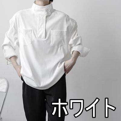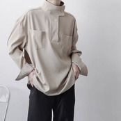 トップス カットソー ユニセックス ハイネック 長袖 レディース メンズ ゆったり 大きめ 大きいサイズ XL 2XL ワイド オーバーサイズ シンプル カジュアル メンズライク 無地 クール かっこいい ボーイッシュ ブラウス シャツ タートルネック 春 秋 体型カバー 細見え 着痩せ オシャレ お洒落 個性派 個性的 ポケット ストレート Iライン 白 ホワイト 黒 ブラック ベージュ 主役 存在感