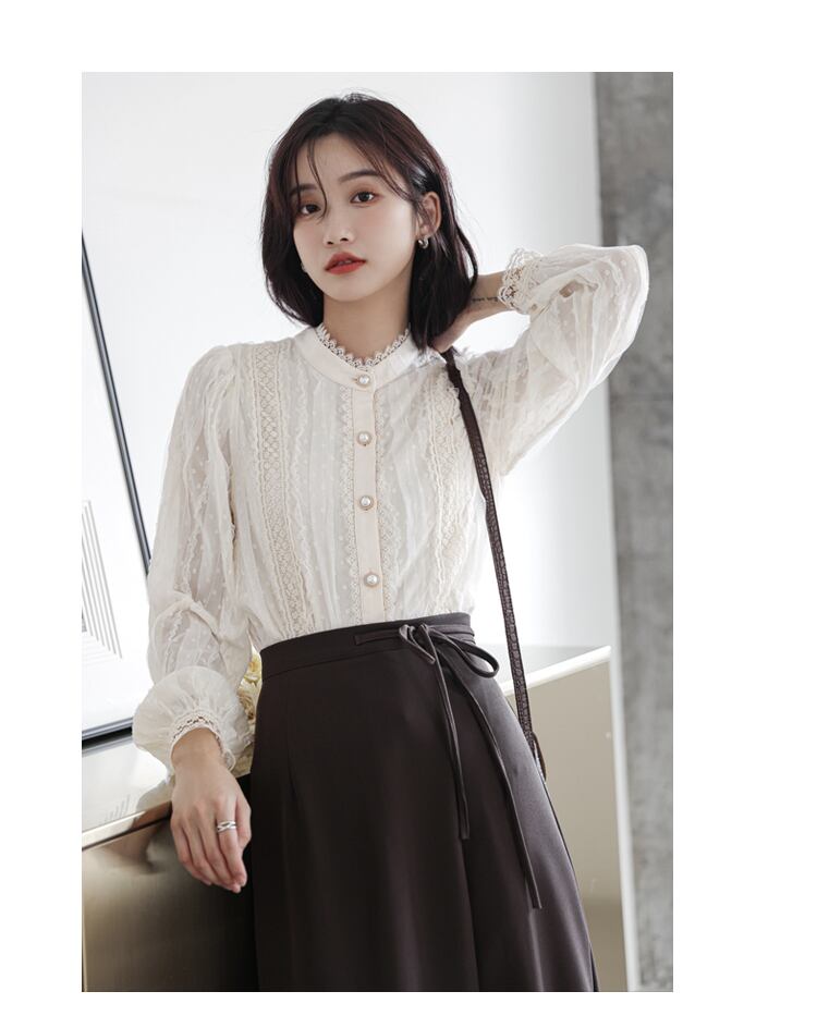 秋 トップス レディース デート ブラウス 上着 白トップス ショート丈 袖あり 長袖 ラウンドネック 襟付き ストレート レギュラー レース 前開き ボタン ポリエステル 異素材MIX かわいい 大人可愛い カジュアル おしゃれ 大人女子 ラブリー 無地 秋 冬 10代 20代 レディース 女性用 ママ 女の子 オフィス ビジネス OL 通勤 学生 通学 デート 女子会 休日 イベント ホテル 重ね着 ファッション インスタ映え S M L XL 2XL アプリコットレギュラー