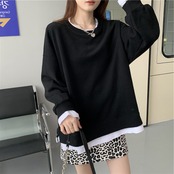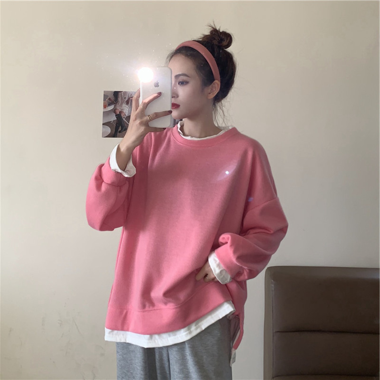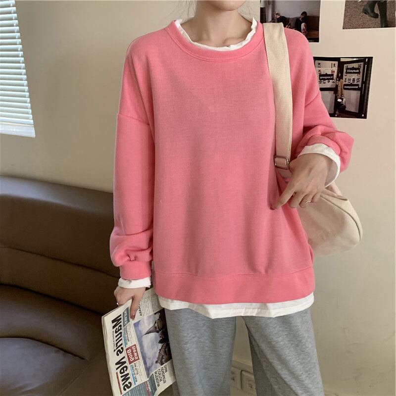 スウェット レディース トップス トレーナー プルオーバー フェイクレイヤード 重ね着風 M L XL 2XL ピンク ブラック 黒 グレー 灰色 ダークブルー 青 大人カラー くすみカラー 秋 冬 クルーネック ラウンドネック 長袖 ドロップショルダー ゆったり袖 ミドル丈 ショート丈 ルーズ ゆったり ゆる ストカジ ストリート フェミニン カジュアル ナチュラル きれカジ 大人 大人可愛い シンプル ベーシック こなれ感 ぬけ感 学生 通学 休日 お出かけ 定番 万能 着回し 韓国 オルチャン
