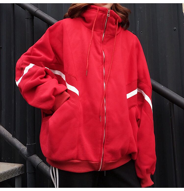 ジップアップスウェット レディース トップス アウター スウェット ブルゾン ジャケット M L XL 2XL レッド 赤 ブラック 黒 大人カラー ライン スポーティー ジップアップ ジッパー 羽織り ライトアウター ポケット スタンドカラー ショート丈 ミドル丈 ゆったり ゆる ルーズ 体型カバー 着やせ 冷房対策 ドロスト カジュアル ストリート ストカジ ボーイッシュ メンズライク ユニセックス カップル ダンス 練習着 スポーツ ルームウェア 部屋着 リラックス 休日 ママ 韓国 オルチャン