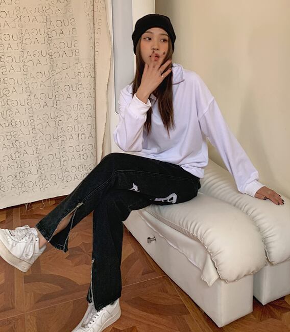 デニム ストリートスタイル ボトムス パンツ Gパン デニムパンツ ストレート ファスナー デニム カジュアル お洒落 かっこいい 大人女子 こなれ感 ラフ メンズライク マニッシュ ボーイッシュ スポーティー 個性的 クール 抜け感 ストリート プリント オールシーズン 10代 20代 30代 レディース 女性用 女の子 学生 お出かけ 女子会 お泊まり 休日 アウトドア 散歩 BBQ 着回し 普段使い ファッション 楽ちん 新作 トレンド 合わせやすい サイズ S M L XL 2XL 色展開 黒