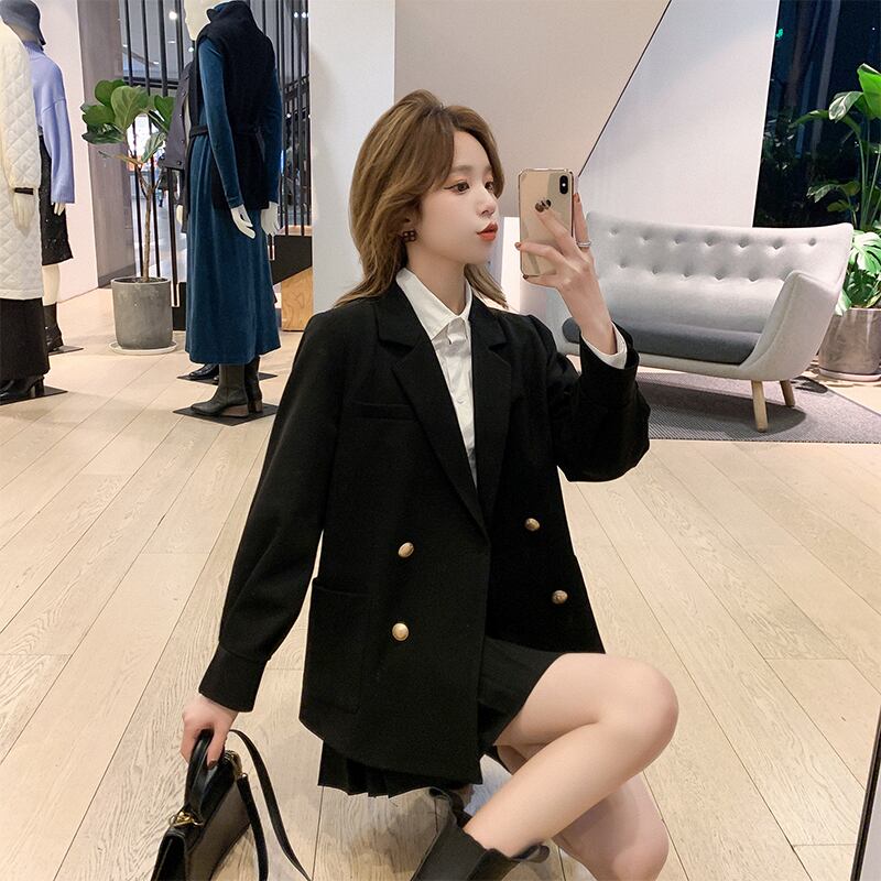 季節の変わり目の羽織り物として重宝するテーラードダブルジャケット。
