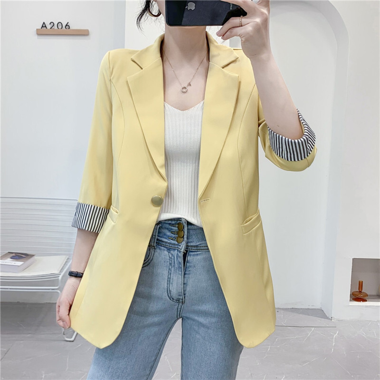 白、黒、パステルカラーのブレザージャケット。