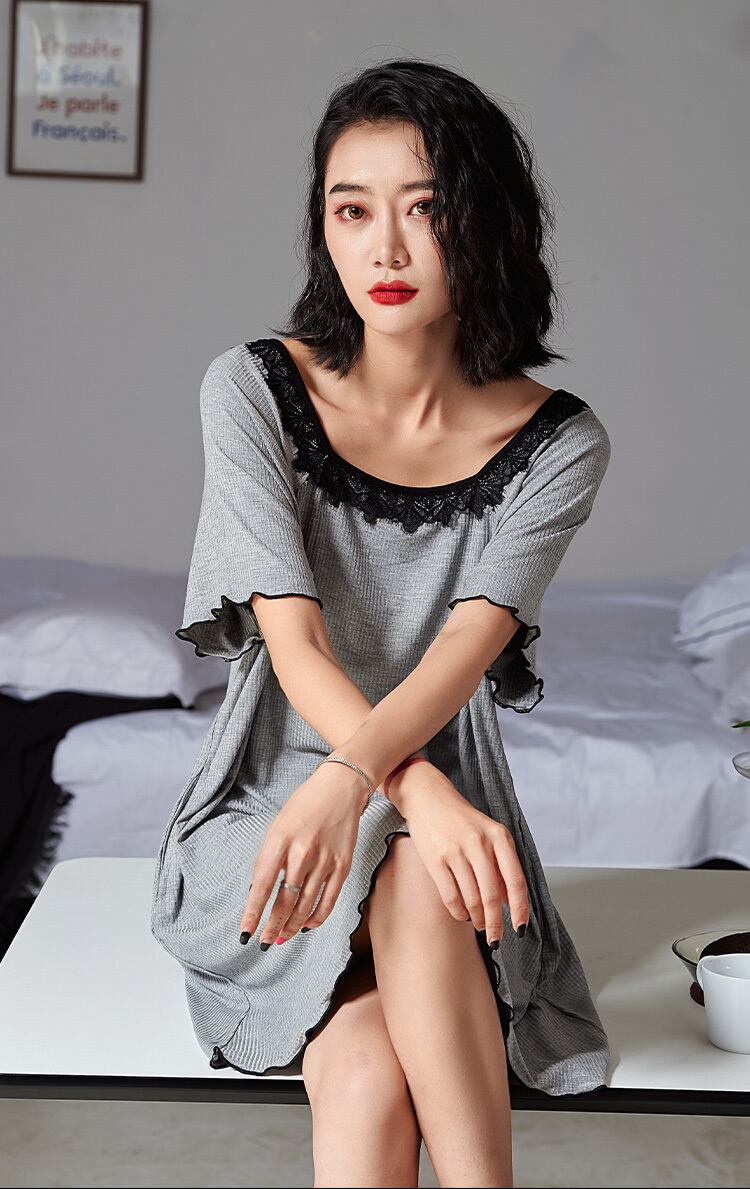 夏 モーダル セクシー ワンピース 部屋着 寝巻き ナイトウェア ミドル丈 袖あり 半袖 スクエアネック 襟なし ふわふわ モーダル かわいい 大人可愛い きれいめ シンプル 大人 上品 お洒落 エキゾチック 大人女子 こなれ感 キュート セクシー モダン 無地 夏 20代 30代 レディース 女性用 ママ オフィス ビジネス OL 通勤 お泊まり パーティー イベント ホテル 普段使い インスタ映え M L XL 2XL ブラック グリーン グレー あんこ色