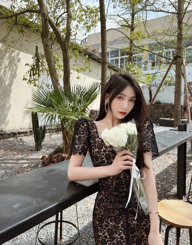 ワンピース レース使いワンピース ロング マキシ タイト 半袖 スクエアネック タイト Iライン ペンシルスカート 大人可愛い シンプル カジュアル おしゃれ 大人女子 セクシー こなれ感 ラフ ルーズ 主役級 存在感 無地 春 夏 秋 10代 20代 30代 40代 50代 60代 レディース 女性用 デート お出かけ 公園デビュー パーティー 女子会 休日 リゾート 旅行 海 着回し 普段使い 重ね着 体系カバー S M L XL ブラック 黒 ホワイト 白 レース 花 フラワー柄