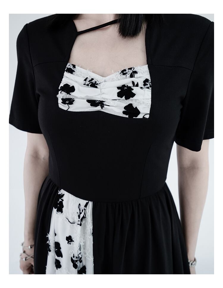 個性的 ワンピース レース使いワンピース ロング マキシ フレア 半袖 Aライン フレアスカート 大人可愛い シンプル カジュアル おしゃれ 大人女子 セクシー こなれ感 ラフ ルーズ 主役級 存在感 無地 春 夏 秋 10代 20代 30代 40代 50代 60代 レディース 女性用 デート お出かけ 公園デビュー パーティー 女子会 休日 リゾート 旅行 海 着回し 普段使い 重ね着 体系カバー S M L XL サイズ ブラック 黒 ホワイト 白 バイカラー 花 花柄 フラワー フラワー柄