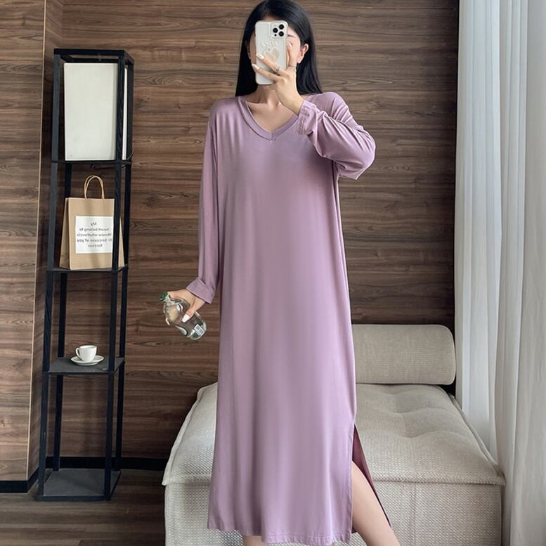Vネック長袖ロングシャツワンピース ワンピース レディース シャツワンピース ロングワンピース 長袖ワンピース Vネック シャツ ドレス 長袖 スリット入り ルームウェア 部屋着 フェミニン 紫 パープル 大人可愛い きれいめ 上品 エレガント フォーマル ガーリー マニッシュ ルーズ 春 夏 秋 冬 二次会 オフィス ビジネス OL 通勤 学生 通学 デート お出かけ パーティー イベント 女子会 休日 体型カバー モテ 普段使い 定番 トレンド ゆったり インスタ映え くすみカラー ニュアンスカラー