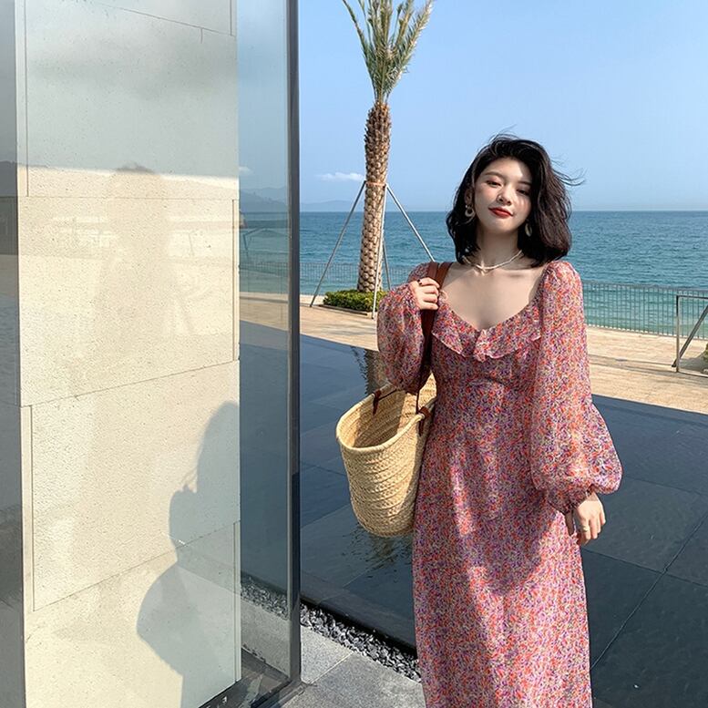 フェミニンムードたっぷりの小花柄プリントワンピース