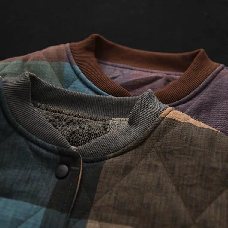 アウター ブルゾン シャンパー 上着 袖あり 長袖 ワイド ポケット 前開き 綿 カジュアル おしゃれ レトロ エキゾチック ラフ メンズライク マニッシュ ボーイッシュ スポーティー 個性的 モード系 柄 チェック柄 秋 冬 レディース 学生 お出かけ 休日 重ね着 暖かい 体系カバー M L XL 2XL ゆったり ゆる 青 緑 紫 パープル ブラウン ベージュ オレンジ くすみカラー 大人カラー 秋カラー 濃いグリーン
