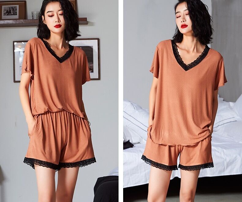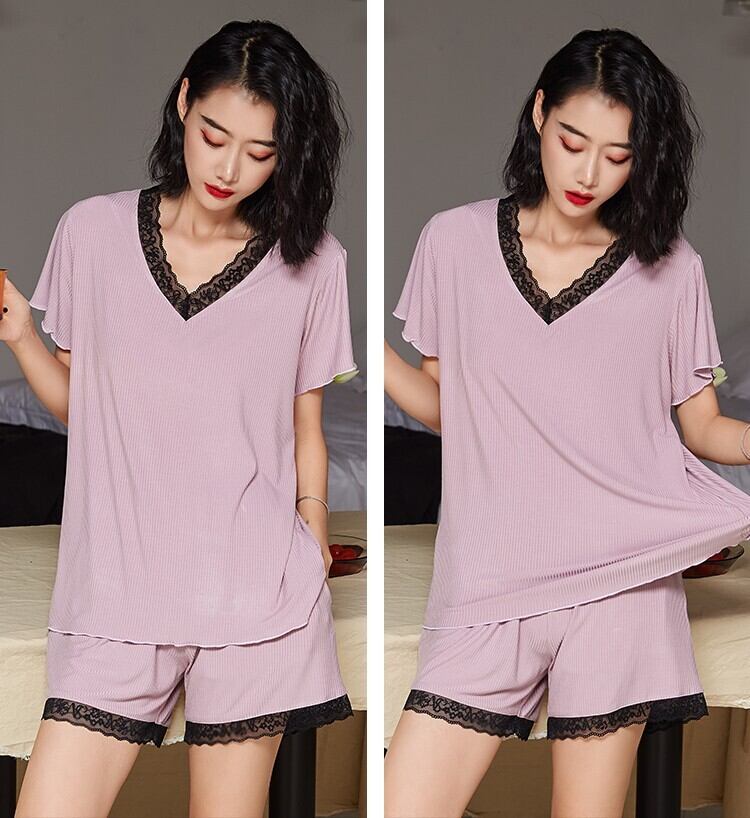 ルームウェア レディース パジャマ 部屋着 2点セット 上下セット セット パンツ ショートパンツ M L XL 2XL パープル 紫 レッド 赤 アプリコット グレー 灰色 パステルカラー シャーベットカラー くすみカラー 夏 レース ブラックレース 無地 半袖 Vネック リラックス ミニ丈 ショート丈 ゆったり ゆる ルーズ 体型カバー ナチュラル ガーリー フェミニン キュート 大人可愛い 大人 お泊り 存在感 主役級 さわやか シンプル ベーシック 定番 王道 学生 韓国 オルチャン 涼し気