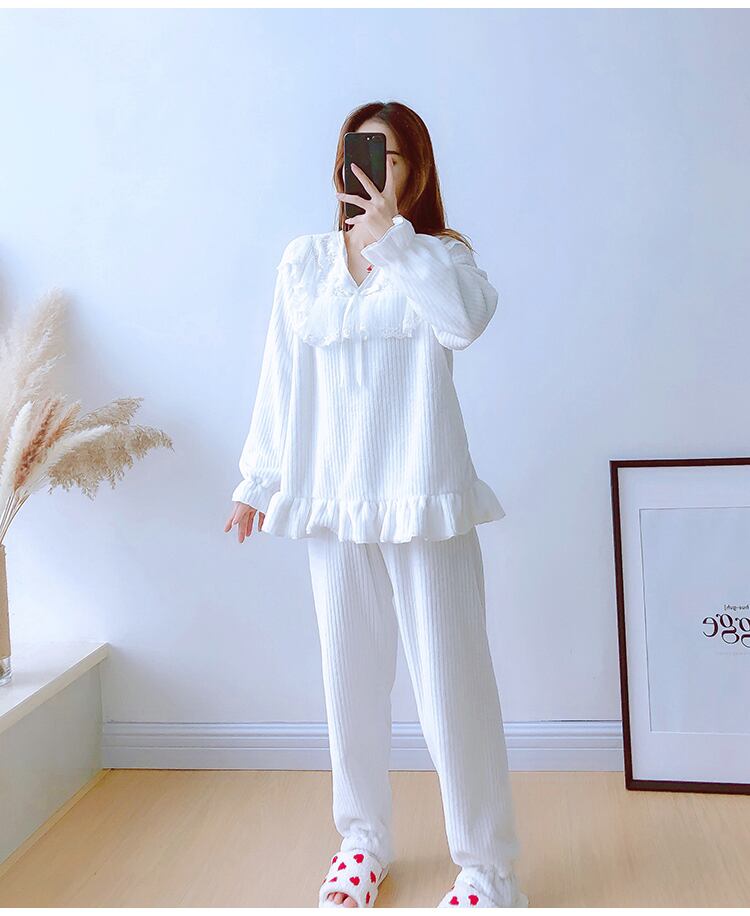 秋冬 ベルベット レース パジャマ プルオーバー 部屋着 寝巻き ナイトウェア ショート丈 袖あり 長袖 Vネック 襟なし レギュラー レース フリル ウエストゴム 透け感 フランネル 異素材MIX かわいい 大人可愛い シンプル 大人 おしゃれ 大人女子 ラブリー モダン 無地 秋 冬 レディース 女性用 ママ 女の子 OL 学生 休日 アウトドア リゾート レストラン 普段使い コーデ 暖かい インスタ映え M L XL ホワイト ピンク