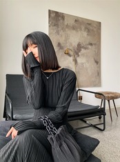 秋のプリーツドレス