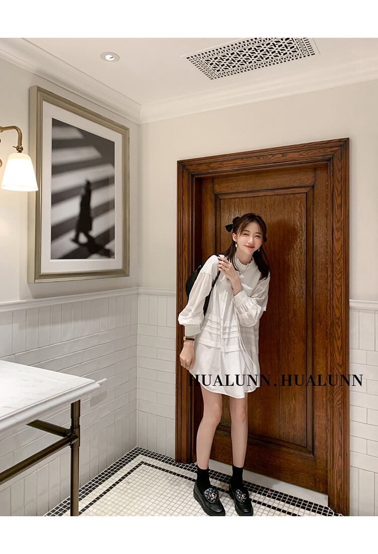 トップス ワンピース シャツ ブラウス プルオーバー チュニック 白シャツ 白トップス シャツワンピース ショート丈 袖あり 長袖 ボリューム袖 ハイネック フリル ポリエステル かわいい 大人可愛い シンプル おしゃれ 大人女子 ラブリー キュート ガーリー ルーズ 個性的 主役級 存在感 無地 春 夏 秋 10代 20代 30代 レディース 女性用 デート お出かけ 女子会 休日 パーティー イベント リゾート 旅行 ホテル レストラン 着回し 普段使い 重ね着 体系カバー M L ホワイト