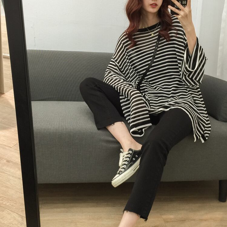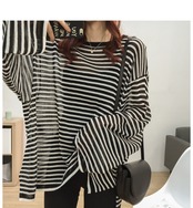 トップス シャツ ニットソー セーター 長袖 ラウンドネック ワイド 透け感 綿 かわいい 大人可愛い シンプル カジュアル 大人 おしゃれ お洒落 かっこいい 大人女子 こなれ感 ラフ メンズライク ルーズ 個性的 クール モード系 ボーダー 春 秋 10代 20代 30代 お出かけ 休日 運動 ジム ヨガ アウトドア イベント リゾート 高原 スポーツ 普段使い ファッション コーデ スタイル ゆったり ワンサイズ 白 黒